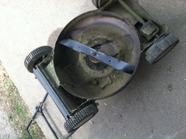 For one thing, the blade was so dull by the final time I cut the grass last fall that turning goats loose to graze would have left the yard looking better. I figured I should get the blade sharpened.