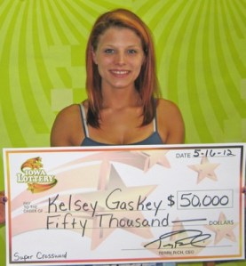 The 23-year-old Muscatine woman won $50,000 with an Iowa Lottery Super Crossword ticket. A massage therapist, Gaskey claimed her prize May 16 at the Iowa Lottery’s regional office in Cedar Rapids. She bought her winning scratch-off ticket at Casey’s, 3010 University Drive in Muscatine.