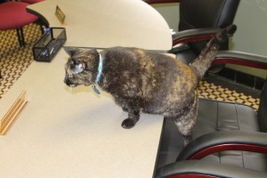 “The police take care of her. The ladies here in the office take care of her,” City Manager Chris Ward said. He was quick to add no tax money is spent to care for Belle. Cash to buy her cat food and kitty litter is donated by her colleagues at City Hall.