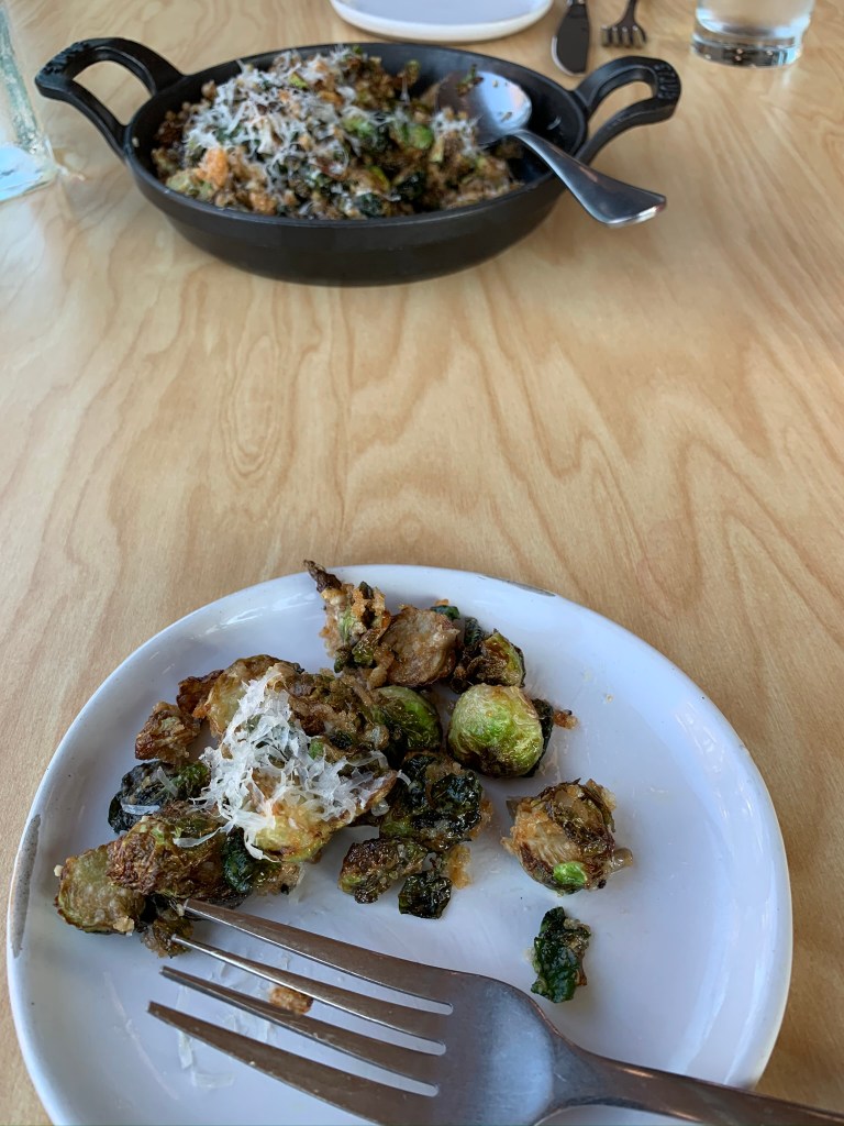 My wife works for one of those small businesses in our town, so I hope it survives. I’m also hoping and praying for Clyde’s Fine Diner — easily the best place in which I ate last week. I had the scallops served with roasted corn, peppers, corn Veloute, crispy La Quericia prosciutto and collard greens. The person I met for dinner and I split an appetizer of fried Brussels sprouts, Caesar dressing, sunflower seeds, toasted bread crumbs and Parmesan cheese. It was the best meal I’ve eaten in a long time even if I had no idea what Veloute sauce is until I Googled it later.