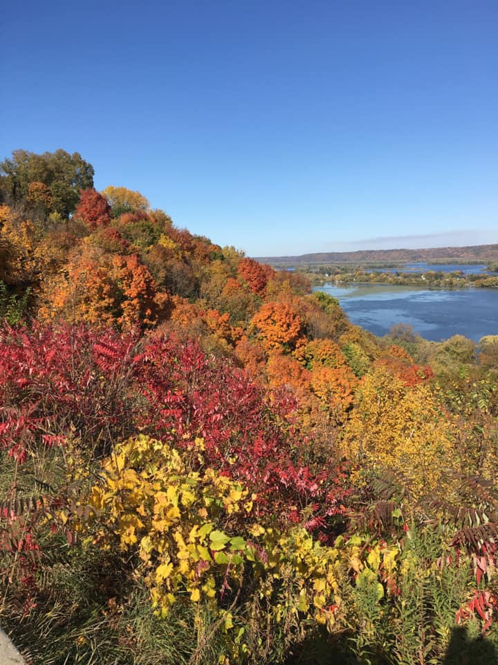 Saturday, Janet and I joined half of the population — or so it seemed — in our corner of Iowa to check out the fall colors at Pikes Peak State Park, the nearby town of McGregor and along the Mississippi River from there to Dubuque. It’s beautiful this time of year. Check it out of you can.